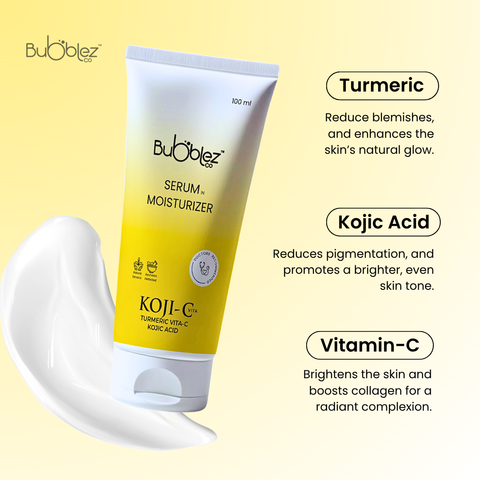 Cleanse, apply the Koji-C Serum Moisturizer, and finish with broad-spectrum sunscreen during the day.