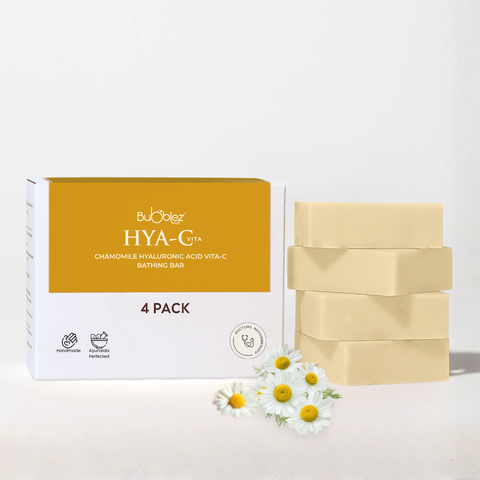 Bubblez Hya-C Bathing Bar is a deeply hydrating and calming bathing bar crafted to soothe, brighten, and nourish your skin from within. Infused with Chamomile, Hyaluronic Acid, and Vitamin C, this luxurious bathing bar delivers a triple-action formula that restores your skin’s natural glow and moisture balance. Chamomile gently soothes irritation, reduces redness, and calms sensitive or stressed skin with its natural anti-inflammatory properties. Hyaluronic Acid draws in moisture and locks it into the skin, leaving it plump, dewy, and intensely hydrated after every wash. Vitamin C brightens dull skin, evens out tone, and helps fade blemishes and pigmentation for a radiant, refreshed complexion. Perfect for everyday use, Bubblez Hya-C Bathing Bar revitalizes your skin barrier, delivering long-lasting hydration and a healthy, luminous glow.