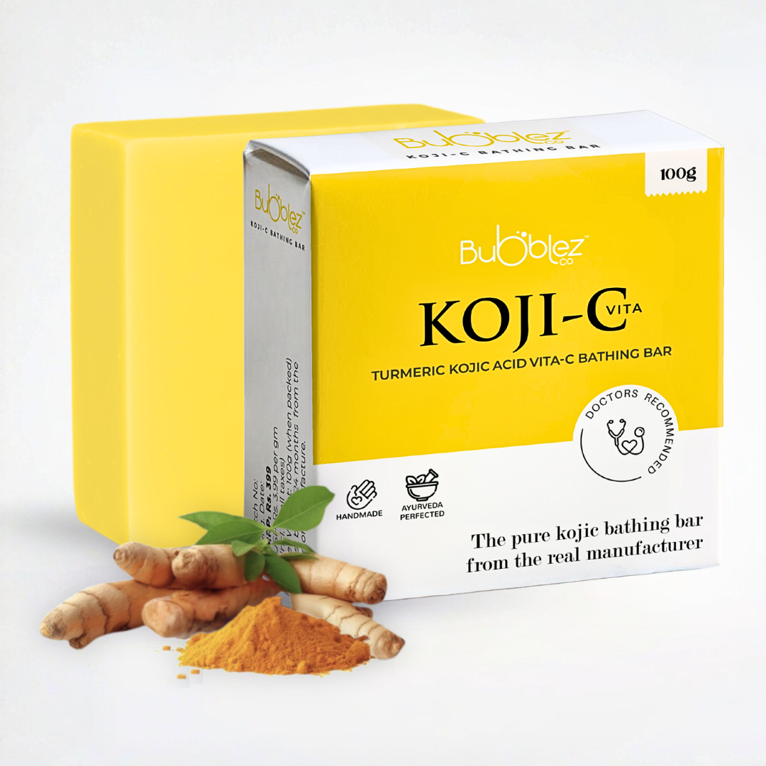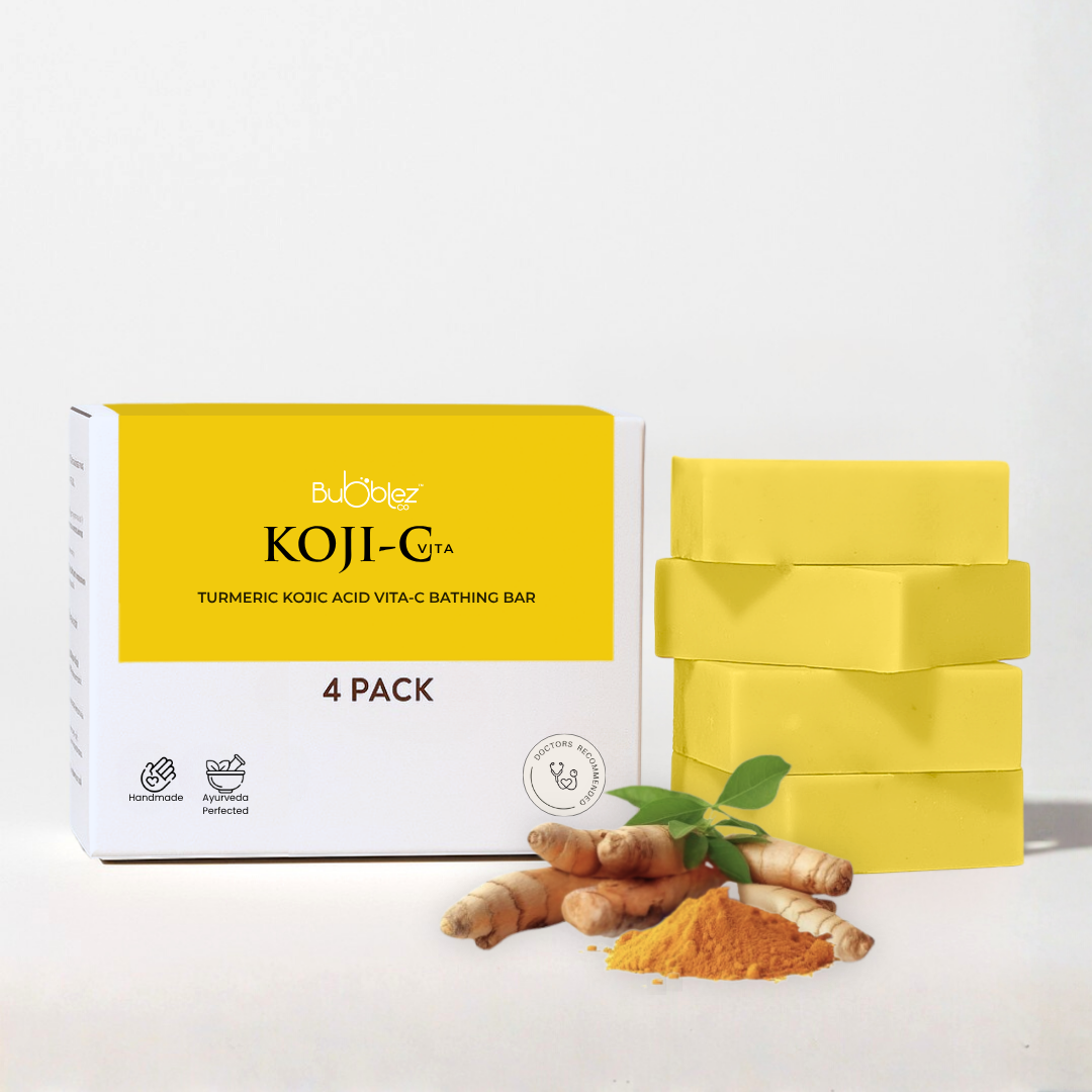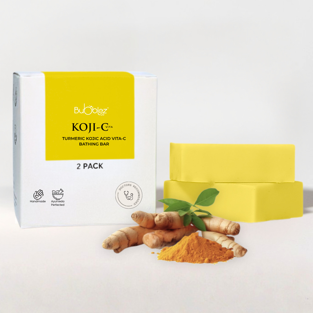 The Koji C Bathing Bar combines Kojic Acid, Vitamin C, and Turmeric to help reduce pigmentation, and dark spots. It also brightens the skin and promotes an even skin tone with regular use.